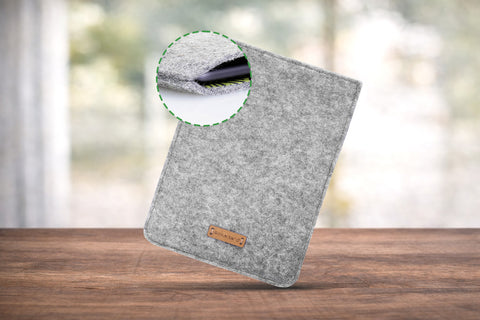 Angiv venligst ved bestilling, hvis du bruger et etui, cover eller tastatur. Vi laver derefter omslaget tilsvarende større. Vi kan også tage højde for en pen.